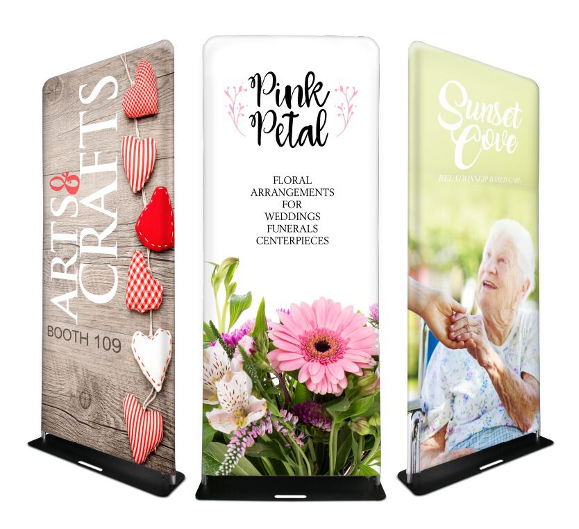 Stretch fabric graphic that slides easily over a durable snap tube frame with a zippered bottom. Comes in two sizes - 36" and 48" wide. - Pop Up Display
