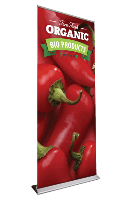 Single sided, premium chrome base, available in fabric or vinyl. - Retractable Banner (Deluxe)