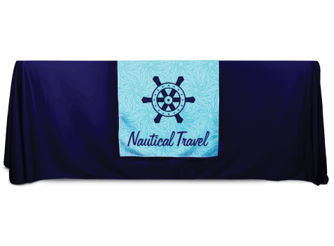 Custom 6.8 oz. polyester table throw that fits a 6' or 8' table with all four sides covered. - Table Runner