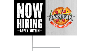 2. Consider the Size of Your Sign - How big do you want your sign or banner to be? Generally speaking, the larger the sign the more attention it will receive. The size of your now hiring sign will also directly communicate to its viewers just how serious you are about finding new employees. An outdoor banner that is 10 feet wide sure says a lot more than a 6-inch decal placed in the corner of a window.