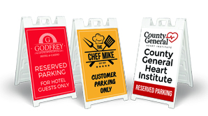 • Choose the Best Location - It goes without saying that the most common location to place your reserved parking sign is right at the parking space that is being reserved. This may work for up to a few parking spaces, but what if you are trying to reserve an entire parking lot or location? One thing you can do is place additional signs at the entrance to the parking location (consider using A-frame signs for this) as well as on light posts, walls, or other structures or surfaces.