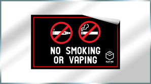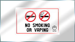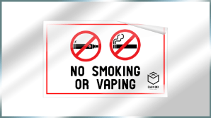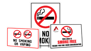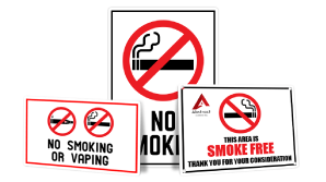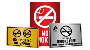 No smoking signs are made to deter people from using cigarettes, e-cigarettes, vaping instruments and other forms of tobacco near specified establishments. This can include restaurants, businesses, hospitals, offices, parks and more. These signs can prohibit people from smoking in or near a building or area and can be used to enforce no smoking laws. They are usually created as an aluminum sign, but can also be created as a plastic sign, decal, or any other type of signage.