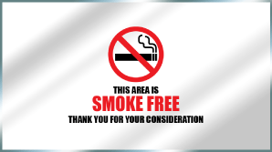 - Location - Some locations to place your no smoking sign that are commonly required by states include all entrances to your building/establishment as well as various areas that can be clearly seen and read by both employees and customers/guests (otherwise referred to as “conspicuous areas”). Regardless of state regulations, we recommend placing your no smoking signs in areas that are clearly visible to your customers/guests before they enter your building or establishment. This will help alert them right away that smoking is prohibited. You may need to order the appropriate sign type depending on where you plan on placing your sign. For example, if you need to place your sign near your entrance and you have glass doors, you may want to order either a window decal or window cling so you can place your sign directly on your door.