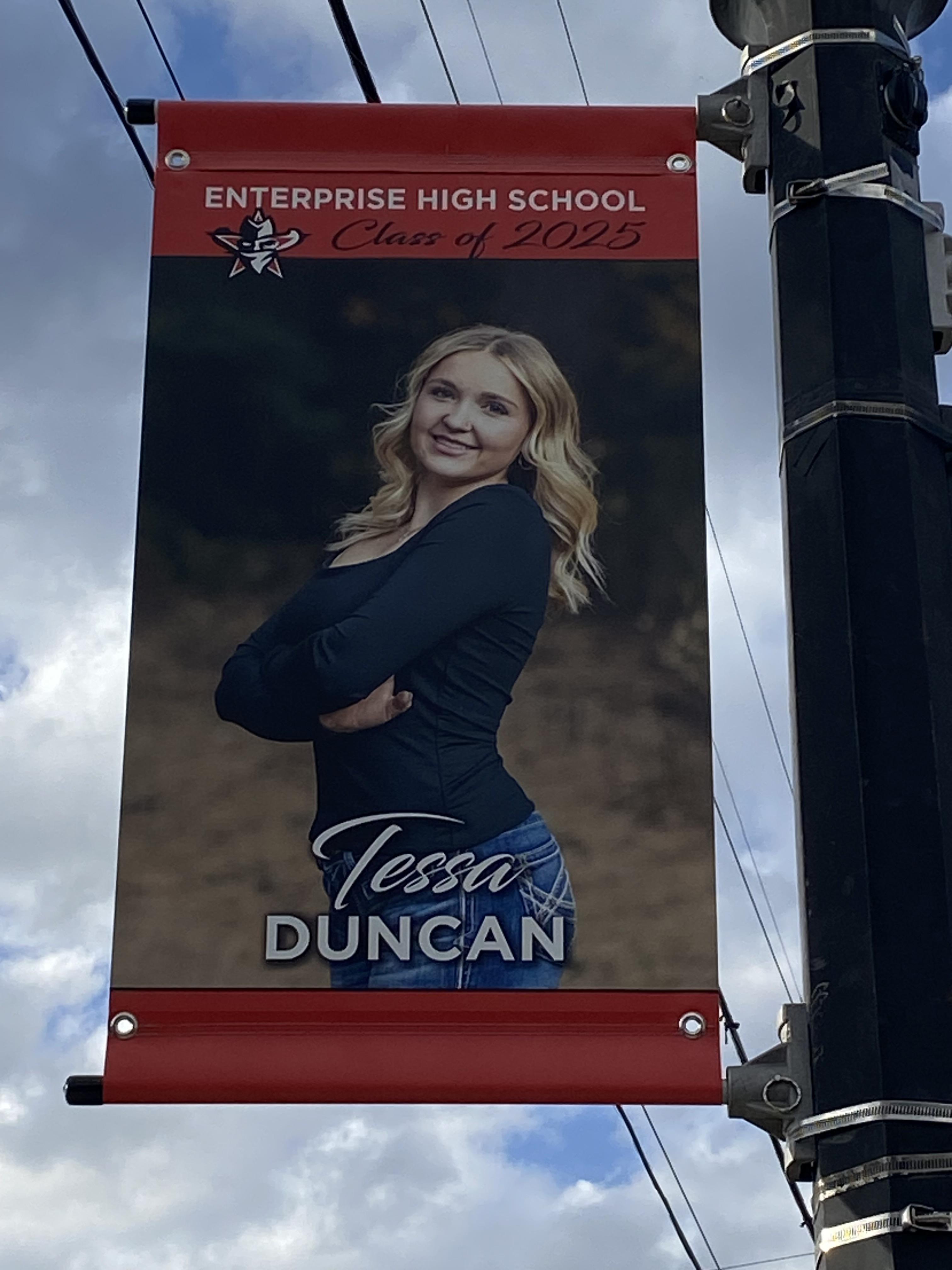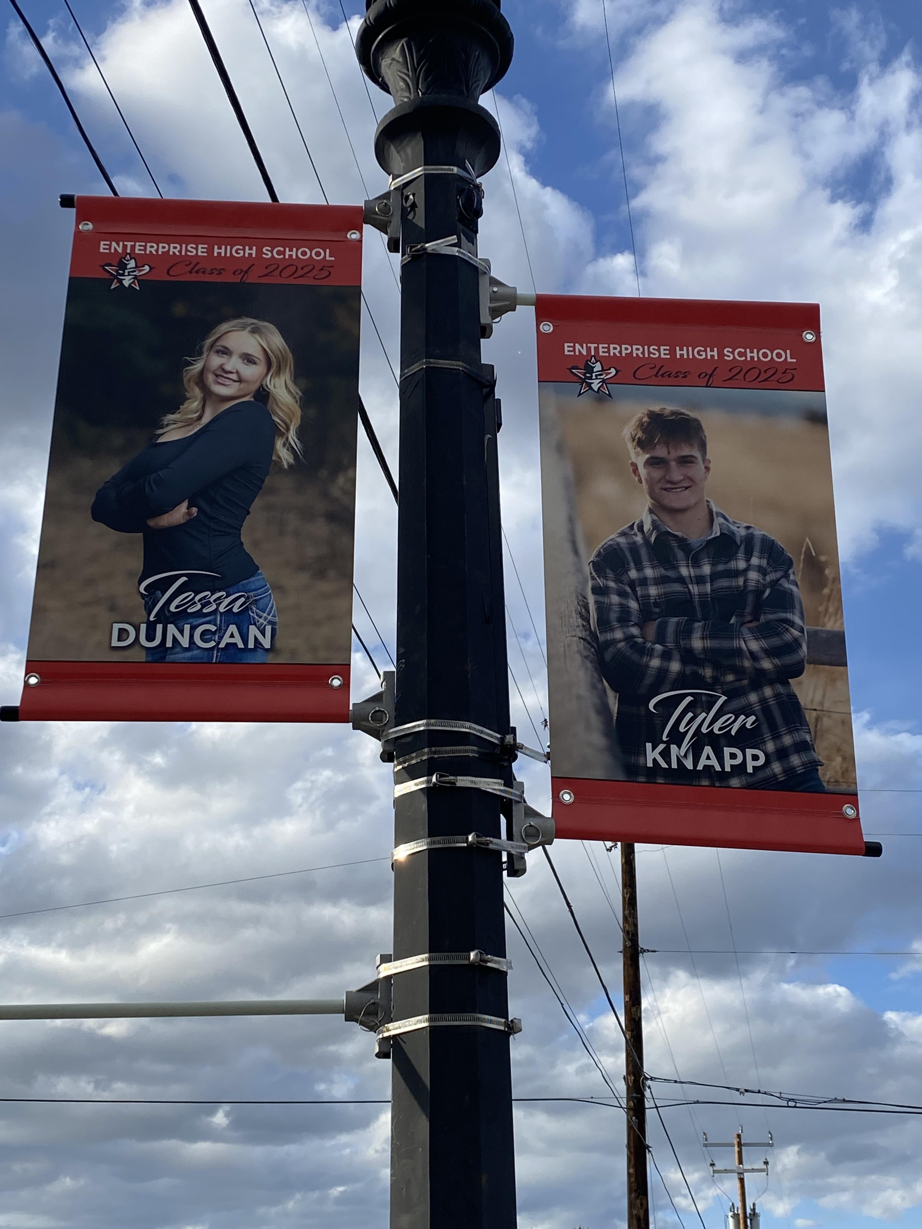 “One of my high school students started this graduating senior banner project last year, and I continued it as a parent this year. She instructed me to get in contact with Kamisha King from signs.com. I’m so glad I did! Kamisha was amazing to work with. So very detailed, thorough, and easy to communicate with. The banners turned out perfectly and are hung on the light poles throughout our town. Thank you Kamisha & signs.com!”